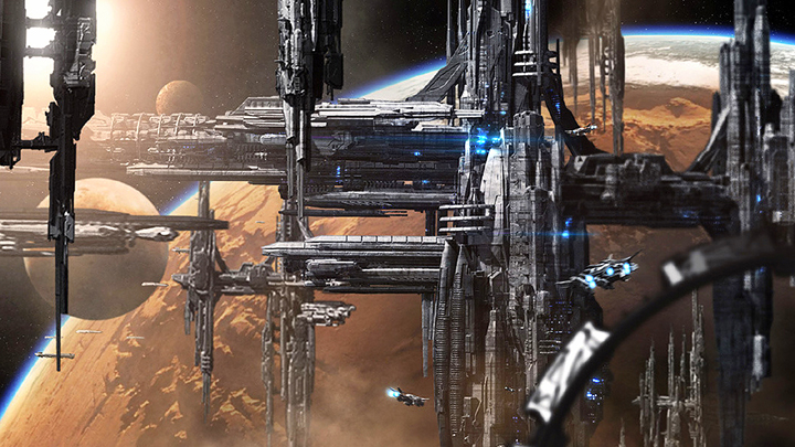 PERIPHERY STATION is constructed unlike any other space station found throughout the Human colonies.  Rather than consisting of modular compartments with connections built in for attaching additional prefabricated units, the JMC has merely chosen to assemble newer sections over or on top of older existing ones.  Over time, this has resulted in a massive assortment of mismatched pieces which appear to be in constant disarray.  According to the census of 2233, this station now provides varying levels of living environments for nearly 1.5 million people.